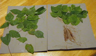 The Ant Bug brought home the CTR Tag-Along Bag from Primary on Sunday, so she selected Lesson 13 from this packet on Sugardoodle.net to teach. She read the story of Joseph Smith going into the grove to pray, and she asked the appropriate questions. For a great hands-on activity we glued leaves to brown paper to make our own sacred grove.