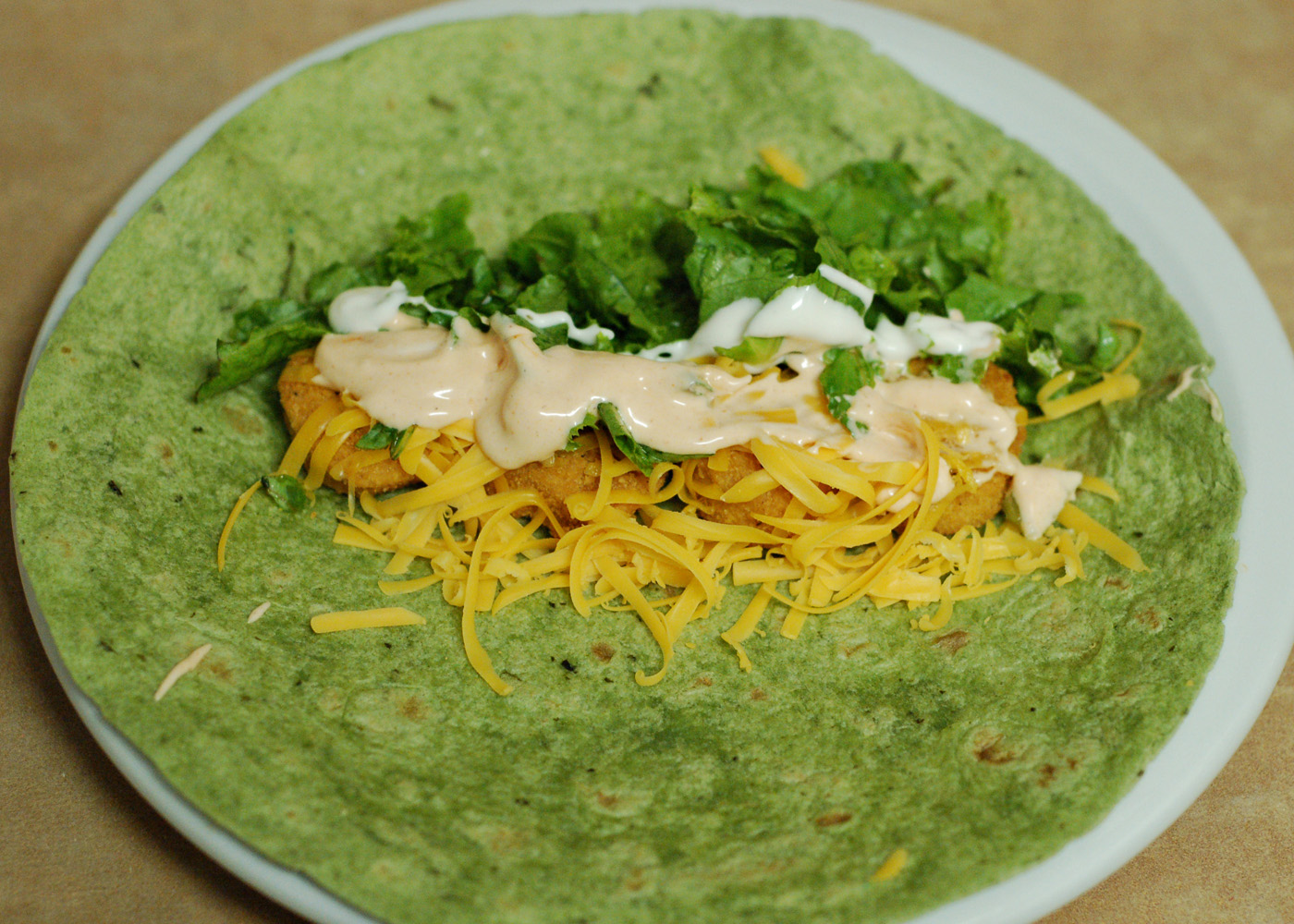 Cook chicken nuggets according to directions. Combine mayo and buffalo sauce in separate bowl. Put nuggets in spinach wrap with desired fixings and buffalo sauce mixture on top. I like to serve with french fries or baked potato.